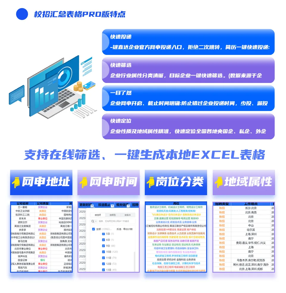 支持在线筛选、一键生成本地EXCEL表格