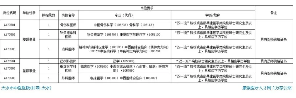 1:天水市2026年度引进高层次和急需紧缺人才岗位列表(市直事业单位)
