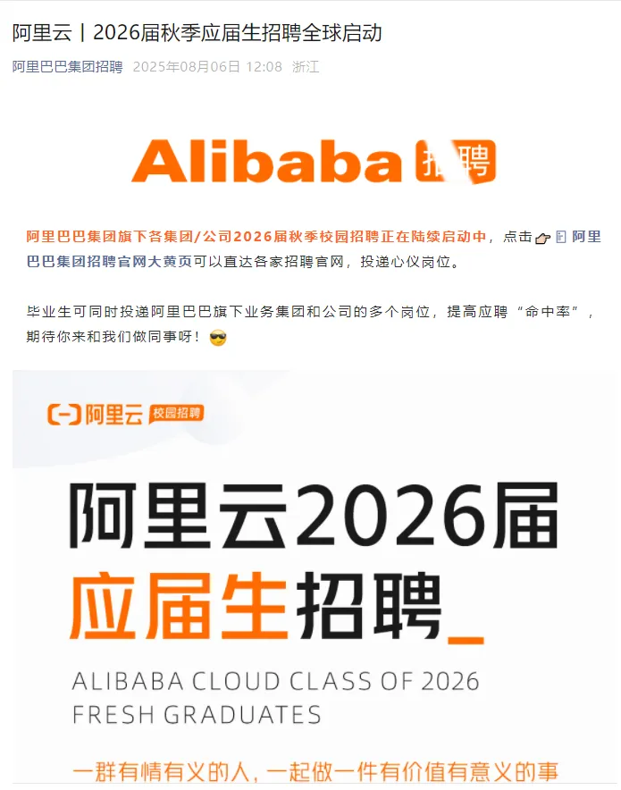 阿里云丨2026届秋季应届生招聘全球启动