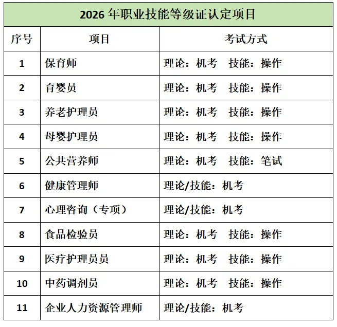 保育师、育婴员、母婴护理员(月嫂)、心理辅导专项能力、医疗护理员(护工)、健康管理师、公共营养师、企业人力资源管理师、食品检验员、中药条件员等职业资格证考证培训,符合条件拿证后可申请1000-2000元政府补贴!