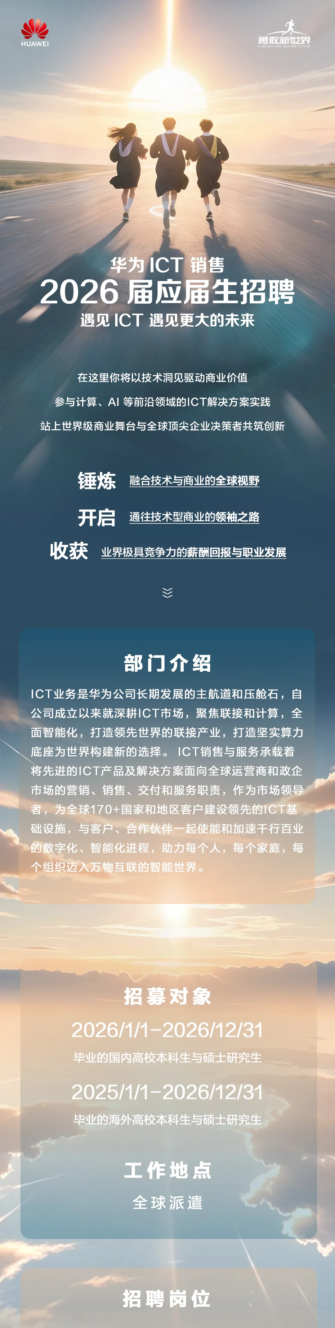 >【招聘信息】华为ICT销售2026届应届生招聘正式启动!