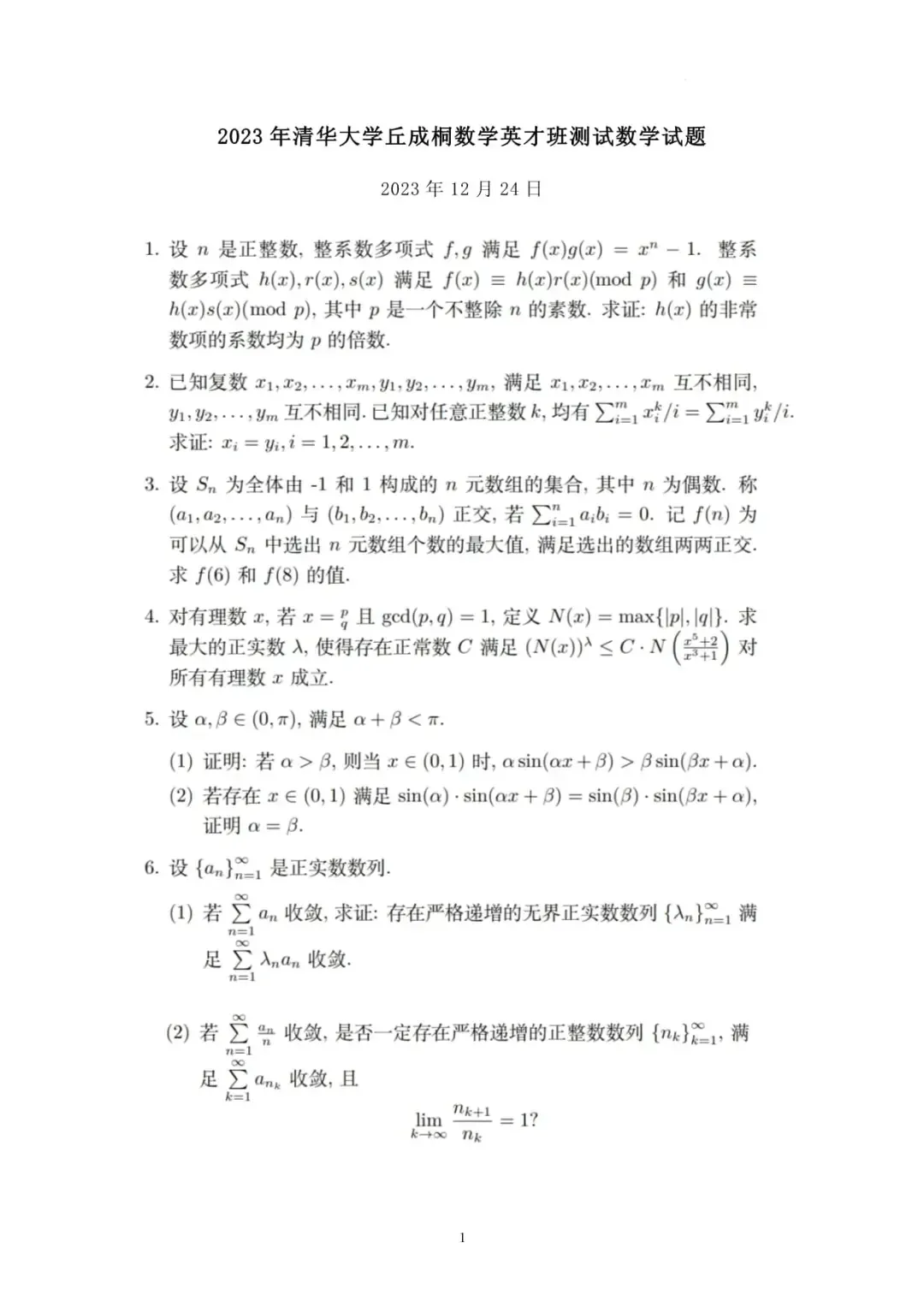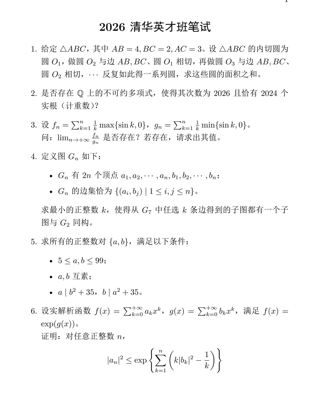2026年清华丘成桐数学英才班笔试真题发布