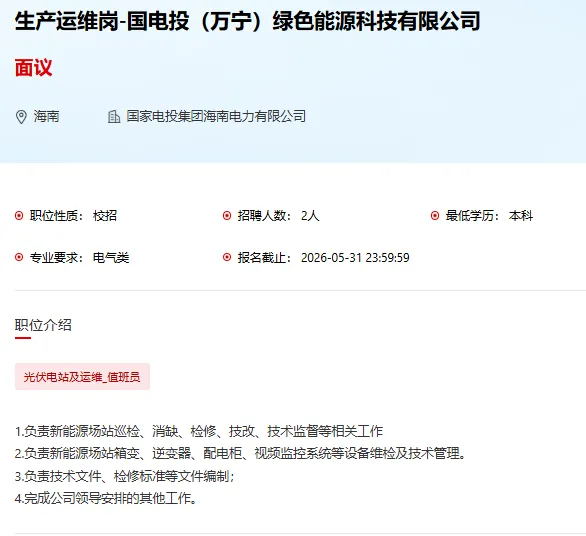央企招聘,应届生可报——国家电投集团海南电力有限公司招聘工作人员