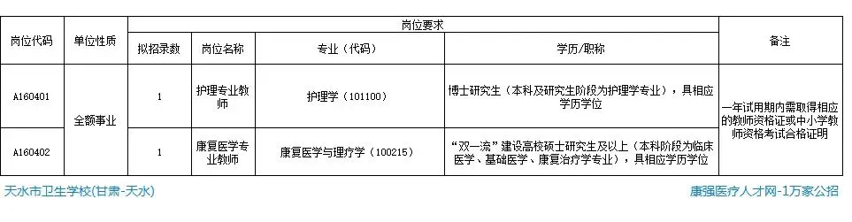 2:天水市2026年度引进高层次和急需紧缺人才岗位列表(县区事业单位)