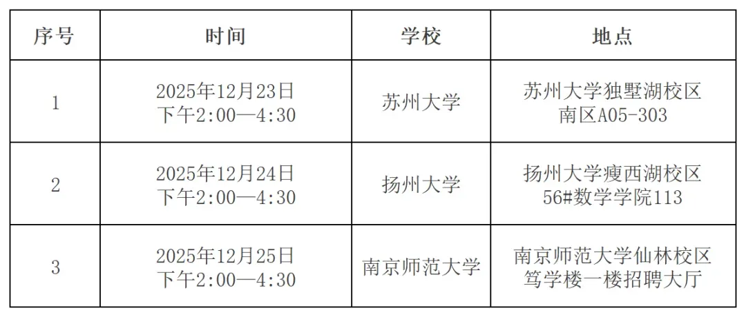 本次校园招聘拟于部分高校设置报名点,由东台市教育局组织相关学校进行宣讲,宣讲会后即组织现场报名。各院校宣讲、报名具体时间、地点安排如下: