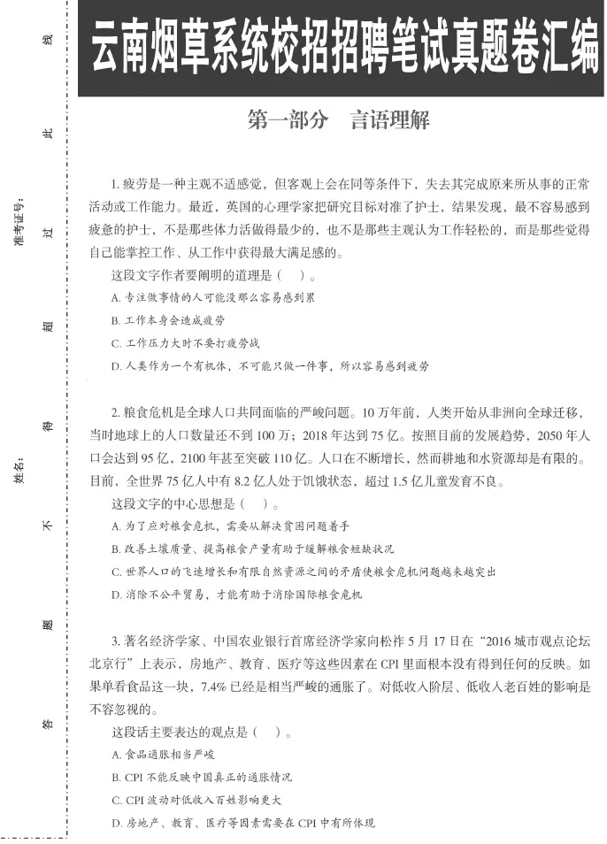 需要云南烟草专卖局2026年校园招聘笔试真题卷,