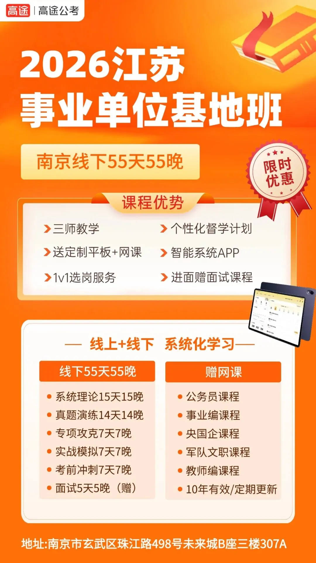 报正价课程即赠华为过考Pad,线上课程有效期长达十年。依托高途自研AI学习平台,系统能够根据你的答题数据生成个性化学习报告,智能定位薄弱环节。配合AI过考模型,帮助擅长自主学习的考研学子精准规划每一分钟,告别无效刷题,高效提升成绩。