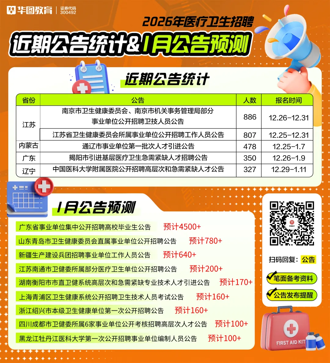 🔥26年医疗卫生招聘🗺公告统计&公告预测⏰发布提醒📃笔面资料⬇备考问题一键解决好内容快转发给身边的人哦