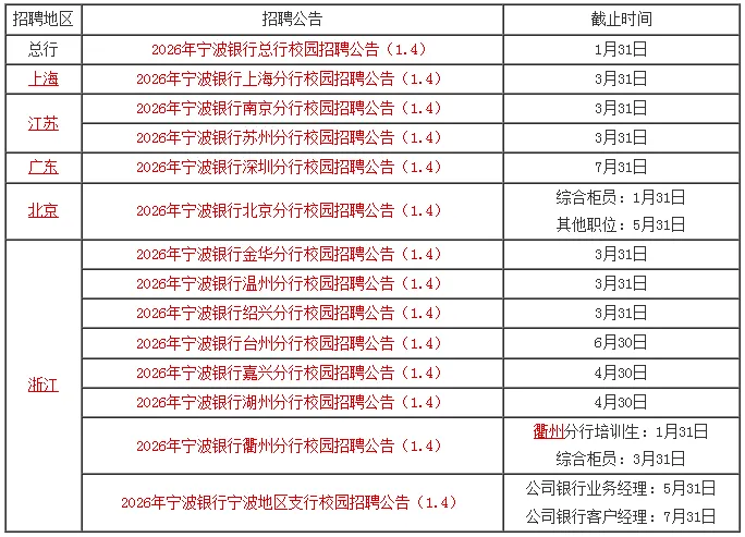 各地区分行校园招聘启事汇总