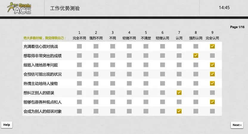 OT五部分分别是N、L、V、性格测试和written English。其他都和原来差不多只有Written English是新的,是30道英文题包括语法、词汇和阅读理解,每题3分钟,最后30秒时间会变红。