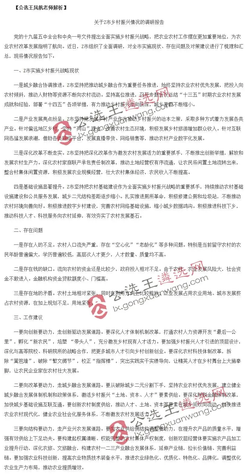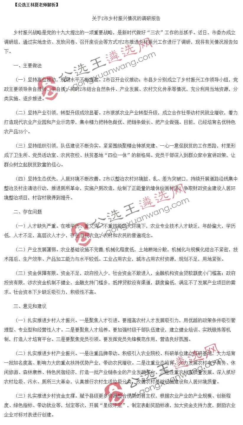 写一份关于Z市乡村振兴情况的调研报告,供领导参阅。要求,1、结构完整,内容全面;2、结合材料,只写正文;3、不少于1500字。该题目公选王已有解析!