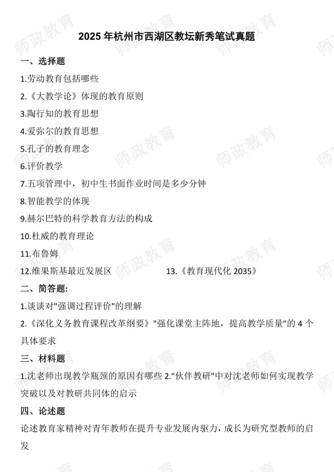 2025.7.10杭州市初中道德与法治职称考试笔试真题