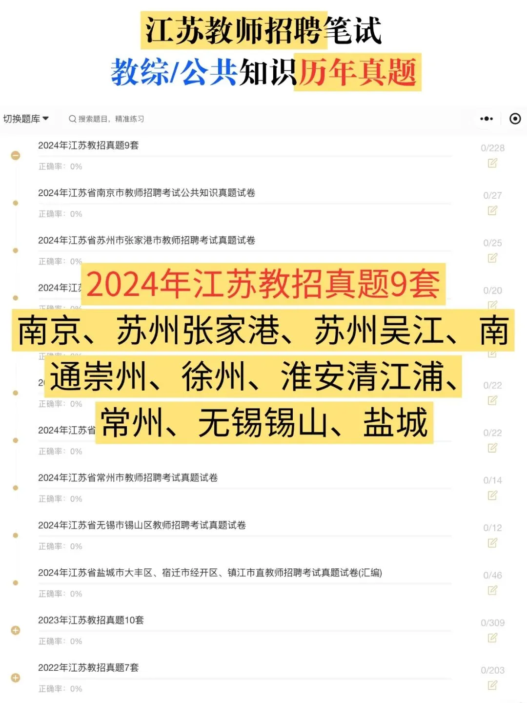 江苏教师招聘笔试公共知识/教综历年真题81套汇总!小程序题库19-25年 !