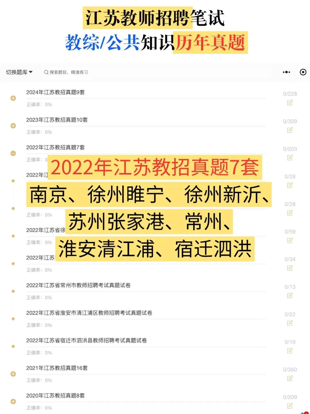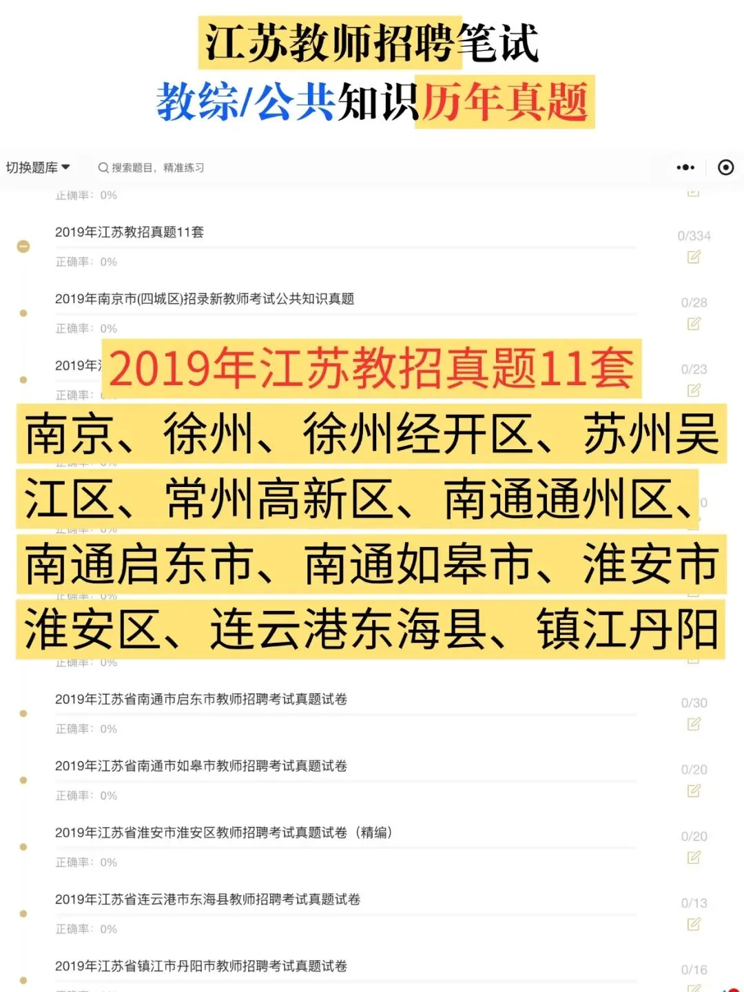 当前位置:首页>笔试招聘真题>江苏教师招聘笔试公共知识/教综历年真题81套汇总!小程序题库19-25年 !