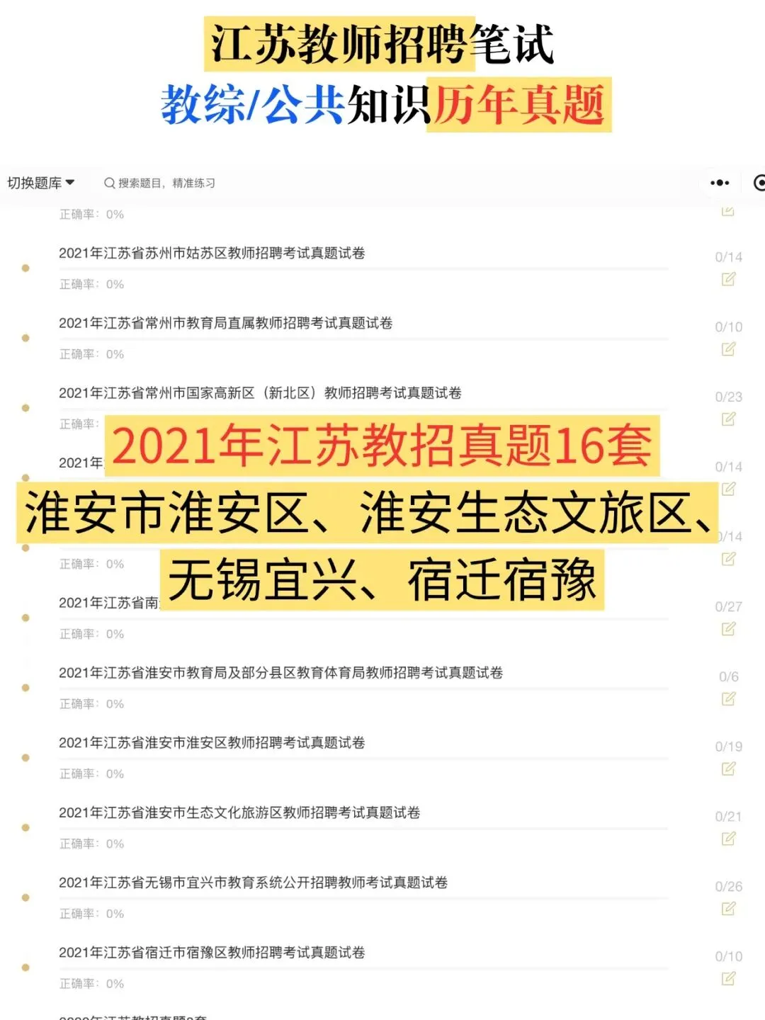 涵盖:南京教师招聘真题、苏州教师招聘真题、盐城教师招聘真题、南通教师招聘真题、徐州教师招聘真题、常州教师招聘真题、泰州教师招聘真题、淮安教师招聘真题、无锡教师招聘真题、宿迁教师招聘真题等72套历年真题