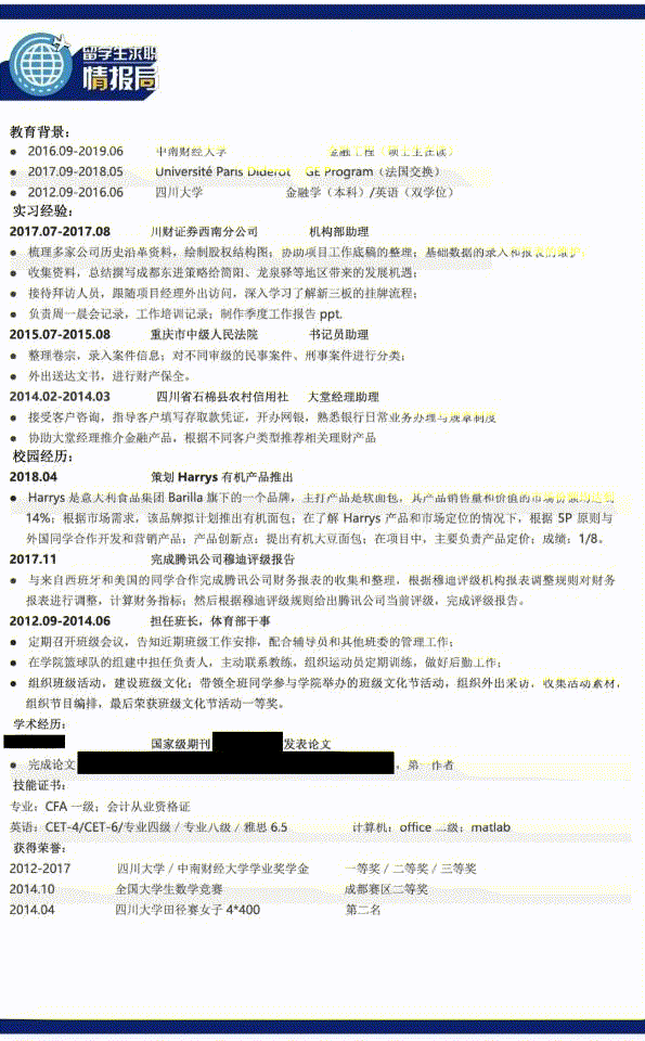 ——拿到外企offer的真实简历--外企求职必备