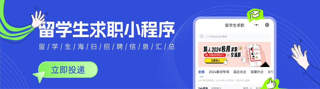 点击蓝字↑,关注并星标,每天获取最新留学生招聘信息