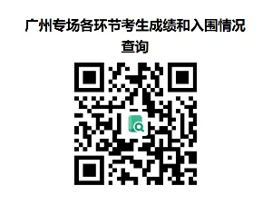 3.笔试成绩。笔试成绩采取百分制,成绩四舍五入后保留2位小数,笔试合格分数线一般为60分,笔试合格人员中从高分到低分按岗位招聘人数5倍比例入围资格复审和面试环节。如招聘岗位考生笔试成绩60分以上人数不足岗位招聘人数5倍的,该岗位笔试合格分数线为55分。岗位笔试合格人员未达5倍比例的全部入围资格复审和面试环节,同分者并列进入。成绩不达笔试合格分数线的不能入围资格复审和面试环节,笔试成绩按40%计算入总成绩。笔试结束次日通过报名系统或“广州专场各环节考生成绩和入围情况查询二维码”(简称二维码)公布笔试成绩及入围资格复审情况。二维码如下图: