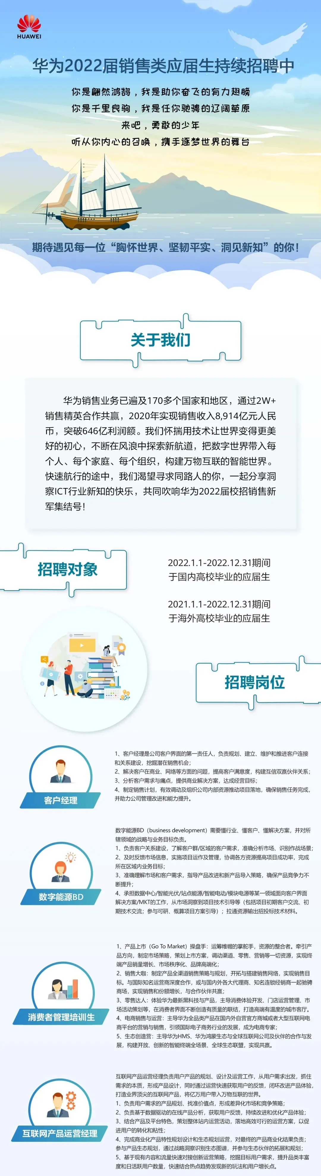 【招聘信息】华为销售类2022届应届生招聘持续进行中!