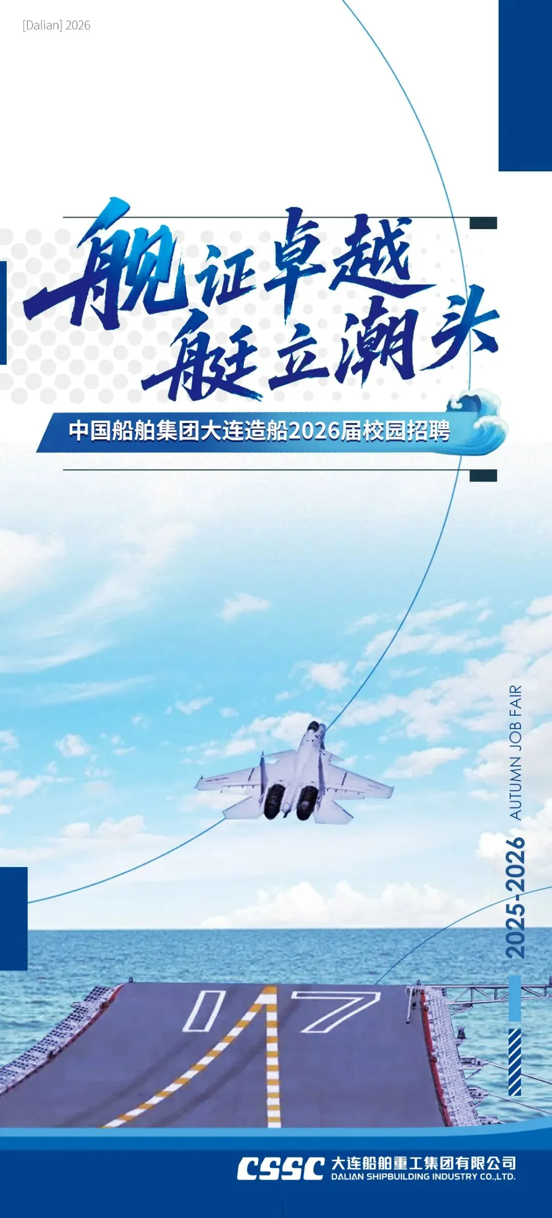 同学们,时代的巨轮正驶向充满机遇的深蓝。我们诚挚邀请你们,以青春之我,铸国之重器!将你们的学识、热情与创造力,融入大连造船的奋斗历程,与我们并肩,共同描绘中国船舶事业更加辉煌的明天!