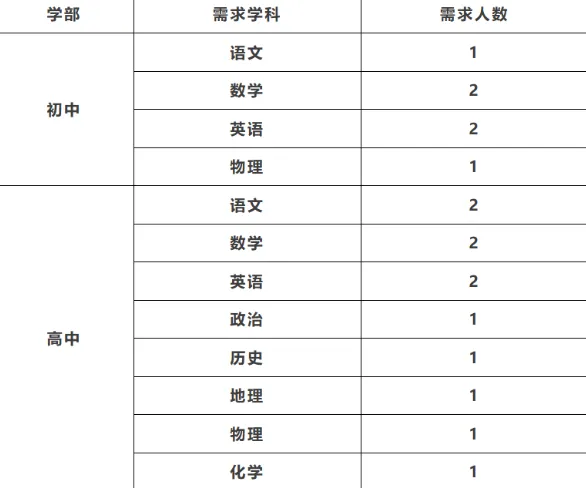 教学基本功扎实,教学成绩突出,热爱教育,专业对口,具备良好发展潜力和创新意识,认同学校育人理念,愿意持续学习成长。