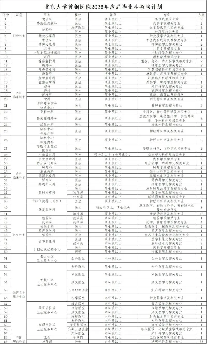 2、请登录北京大学首钢医院2026年校园招聘网申地址https://syhci.zhiye.com/campus/jobs