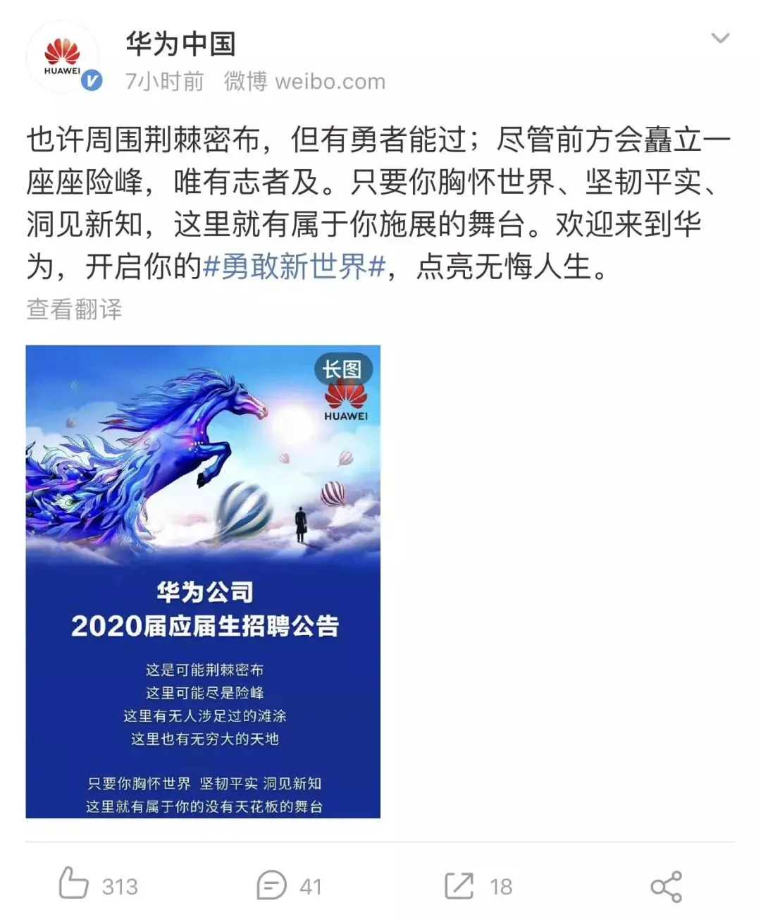 今日,华为中国在官微发布了《华为公司2020届应届生招聘公告》,公布了华为公司对应届生的招聘岗位需求,以及应届生应聘时的注意事项与应聘流程。想要去华为工作的小伙伴可以了解一下。