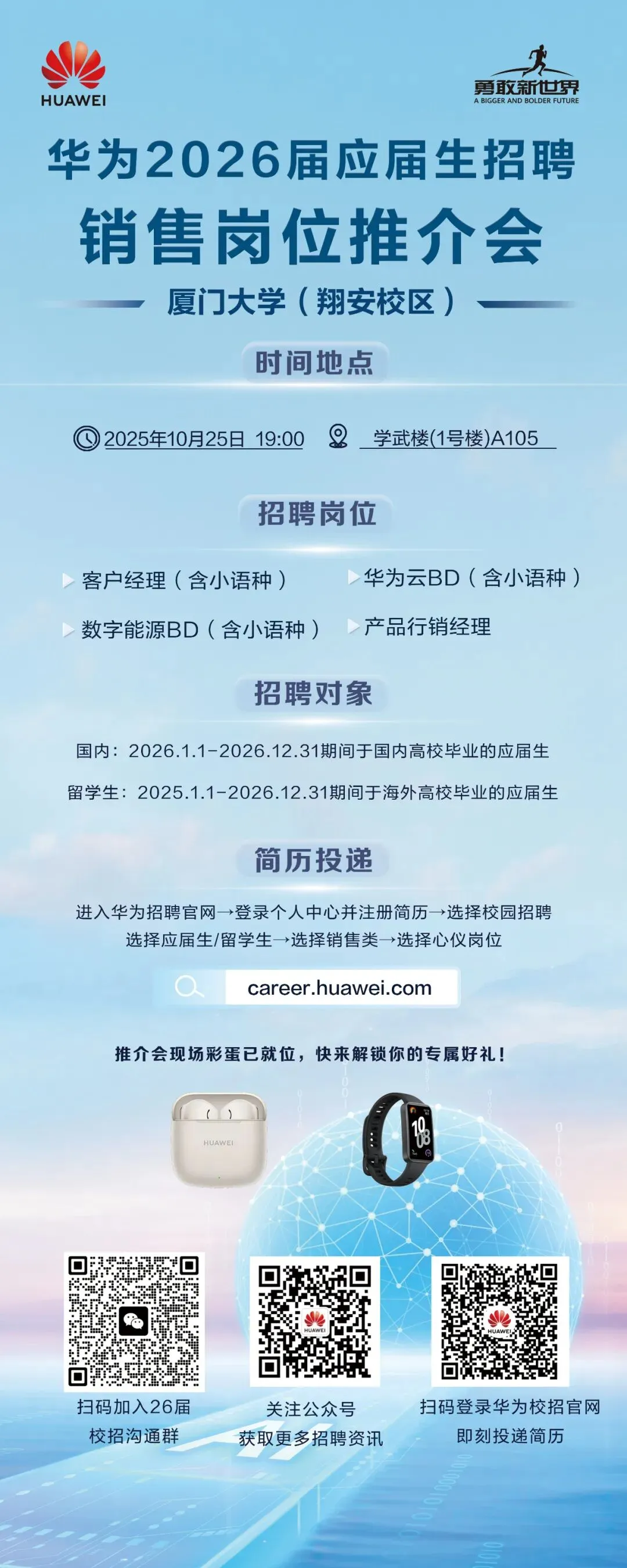 >杭厦区域 | 华为2026届应届生招聘销售岗位推介会(厦门大学-翔安校区专场)