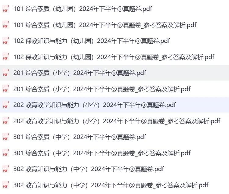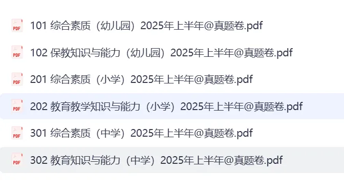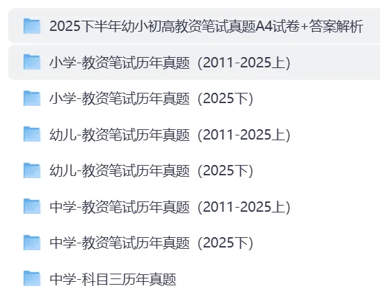 总资源:我用夸克网盘给你分享了「☆教资笔试历年真题汇总(科一+科二+科三)」链接:https://pan.quark.cn/s/4fcc180fb5a6