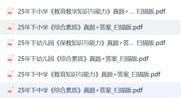 教资备考,真题是关键!这里有教资真题电子版 | 2011-2025 下教师资格证笔试科一科二科三真题及解析(更新版)。涵盖多年真题,详细解析助力你理解考点,无论是熟悉题型、把握命题规律,还是检测学习成果,都能为你提供有力支持,让你备考更有方向,轻松应对教资笔试。