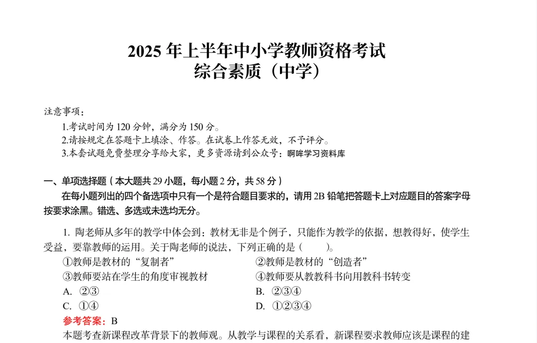 2025年上半年|教师资格证笔试真题