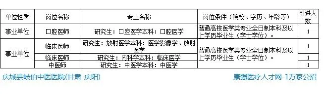 1:庆城县2026年事业单位公开引进高层次和急需紧缺人才岗位需求表