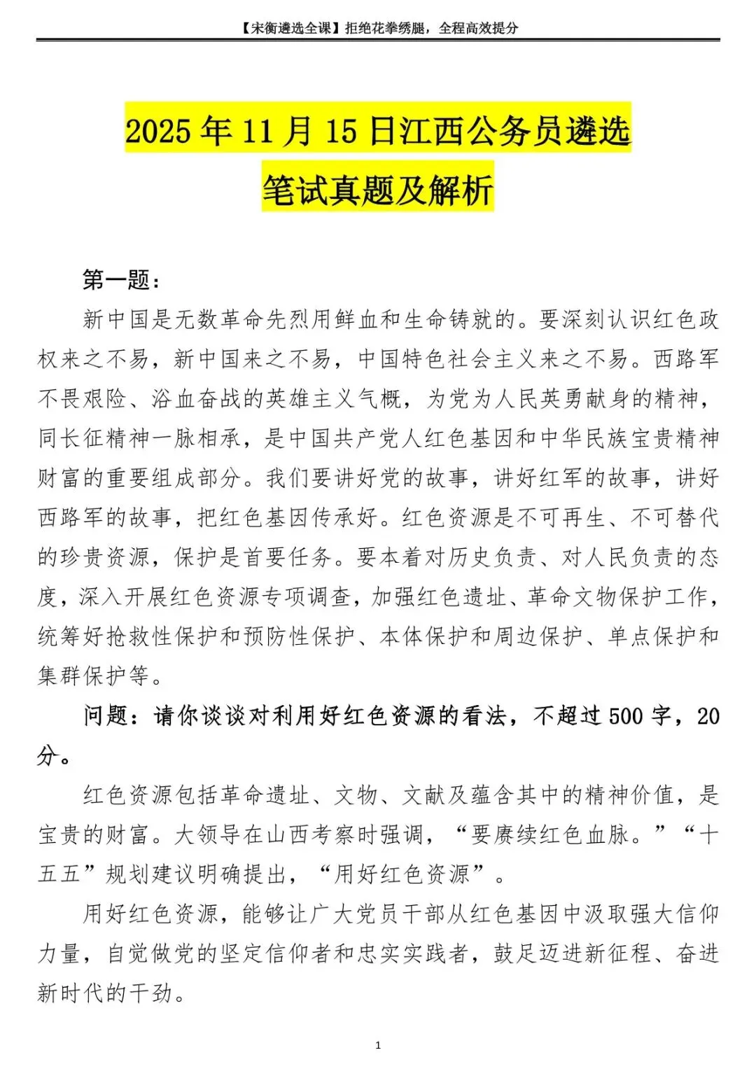 >2025年11月15日江西公务员遴选笔试真题及解析