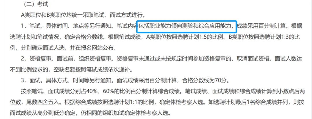 2025年和2026考试内容都是职测+综合应用,考试内容和山东省3月份的事业单位一样。不再区分AB类考察,统一进行笔试!