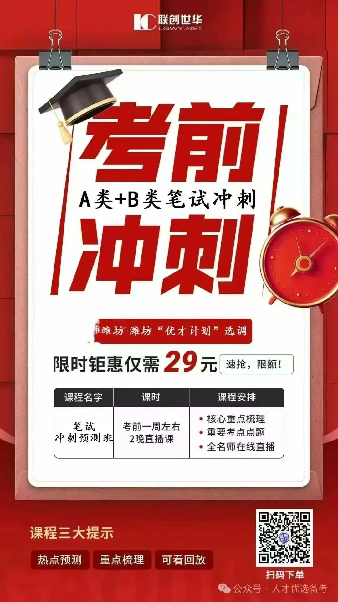 不便转发的同学可以购买潍坊优才笔试冲刺课程,考前三晚直播课程,仅需29元!免费获得以上电子资料免费领取,提前学习!详询陈老师:19306361157(同V)