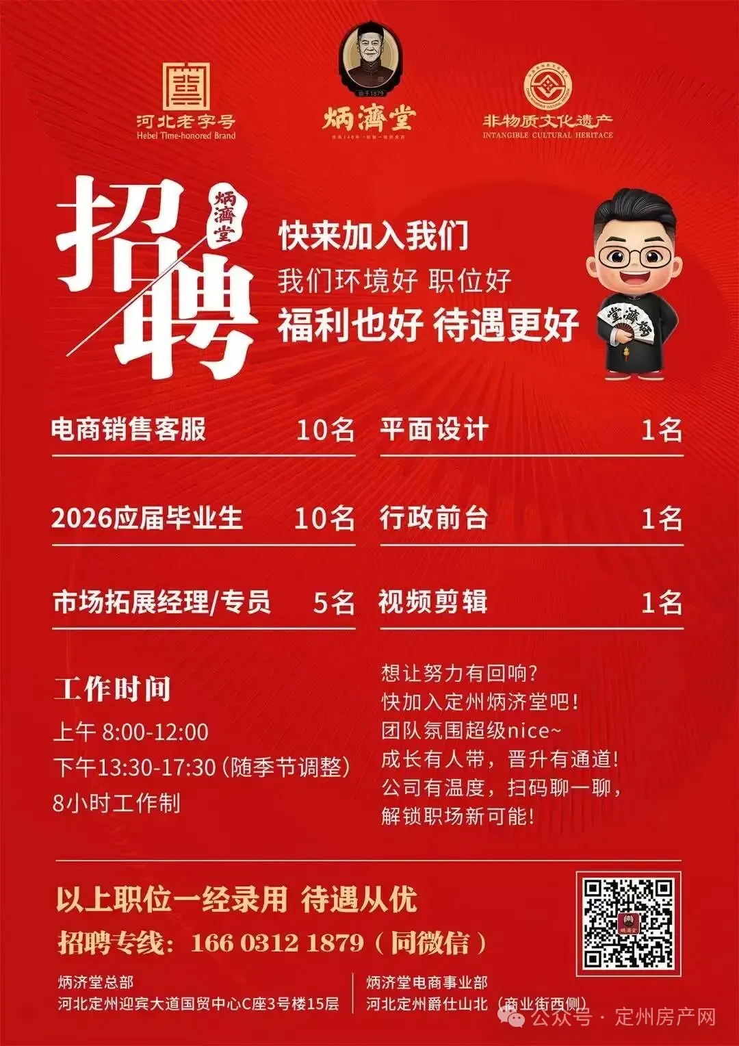 炳济堂招聘应届毕业生、前台等岗位!还有店员、内勤等岗位!1月10日最新!