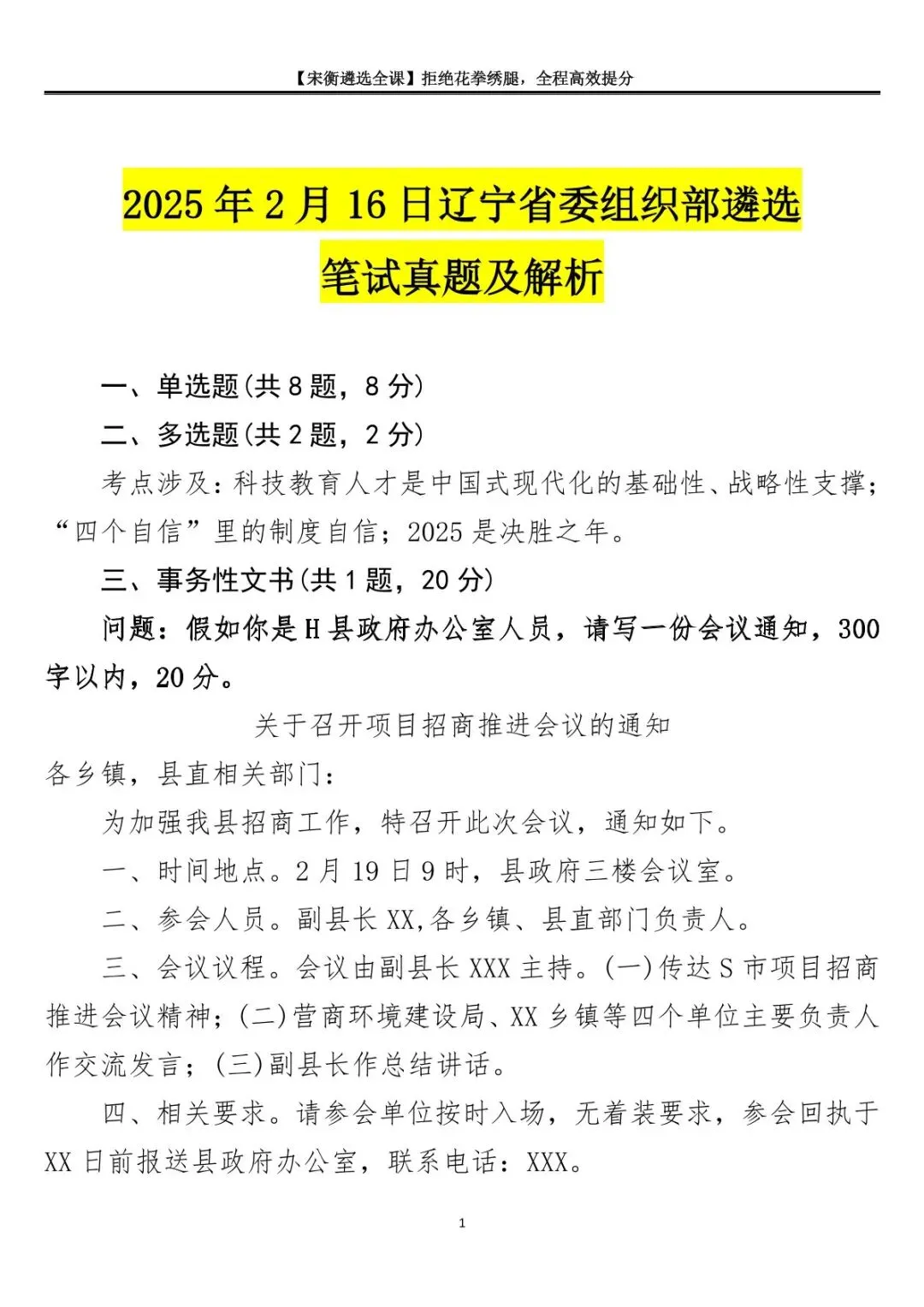 2025年2月16日辽宁省委组织部遴选笔试真题及解析