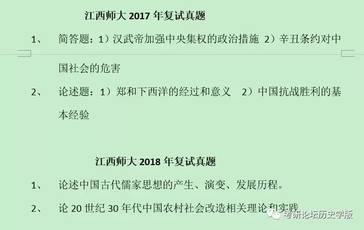 唐代赋税制度变革及影响谈谈你对张居正改革的看法评价雍正帝论述明中叶到辛亥革命之间的中西文化交流4.论述抗战时期国民政府开发西北的原因、措施及评价6.一句你感兴趣的近代史方向,说出这个方向的代表性作者和代表性论著,就其史料运用,观点方面进行评价,并对该书做总体性评价。2019陕师大中国古代史复试一,名解8×5妇好 鸿沟 九品官人法 节度使 色目人 一条鞭法 理藩院 理学二,论述,六选三,3×201,王国维一段材料2,汉代官制一段材料,分析少府的职能和特点3 南齐书,王僧虔传一段材料,可能是讲玄学的4,解释苏轼评价韩愈“文起八代之衰,而道济天下之溺”5,概括北宋,辽,金,夏,元的地理政治关系6,一段关于新清史的材料,谈谈你对新清史的理解三,两张图,比较汉长安城和唐长安城城市布局的区别(25分)四,谈一谈你读史学名著的读后感(25分)2019延边大学复试笔试真题1.试论戊戌变法与清政府“新政”2.大化改新的内容意义3.《江华岛条约》签订对朝鲜近代化的影响4.试论阿拉伯文化在世界中古文明中的地位2019延边大学复试加试真题(跨专业):1 .论述高丽王朝的田柴科制度 2 .《朴茨茅斯条约》和朝鲜 、中国东北的问题3 .公元前八世纪到公元前三世纪欧亚文化的思想特征4 .日本平安时代政治制度的演变一:简答题简述腓尼基人的历史贡献简述伊斯兰阿拉伯文化的成就简述凡尔赛华盛顿体系的矛盾与弊端简述科立芝繁荣二:论述题试述三世纪罗马帝国危机的表现和根源论述新航路开辟影响(唯一一个猜中的)论述马克思主义产生条件论述十九世纪欧洲列强瓜分非洲的原因点评:湖师大很风骚,初试考中国史,复试考世界史,原地爆炸。1.论述学界关于商代的社会性质,并说说你的看法。2.秦汉魏晋乡里制度的发展。3.唐宋时期经济重心南移的表现和原因4.明清内阁的产生、演变和对朝政的影响5.早期维新思想的观点6.国民政府的币制改革点评:不分方向,每个时代一道题,平均!难度总体比初试层次要深。名词解释(6×20)1.五口通商2.三国干涉还辽3.北洋三杰4.东北易帜5.资源委员会6.《波茨坦公报》论述题(3×60 1、2必答 34567选一题)1.清末新政在近代中国的地位和影响2.20世纪初,马克思主义广泛传播作为最具影响力思想之一,说明原因3.赫德对近代中国政治、经济的影响4.简述府院之争的内容和影响5.抗战时,中共创建和发展抗日根据地的逻辑依据和现实基础6.重庆谈判有无和平的可能?谈谈你的看法7.台湾属于中国一部分的历史事实和国际法依据点评:题量不小,跟初试题题型基本相同。跟某些老师研究方向相符。题目具备开放性。一 论述 一个40分罗马对世界三次征服(武力 宗教 法律)凡尔赛华盛顿体系的形成与影响二 英译汉 20分有关亚历山大的文章 长度中等 句式比较复杂 有专有名词 和看不懂的形容词这种 看懂和不懂的大概2 1分点评:英语笔试当中大多学校都有,中英互译是比较常见的一种考察方式。湖大复试的笔试是两小时。1.说出令你印象深刻的历史学理论专著,为什么?2.评述曹操3.试评述科举制今年跟往年的题型都不一样,往年好像是名词解释加问答题,题量不少,今年题超级少,文博复试的笔试好像也是三道大题,3选2加2选1,时间肯定是够的,大部分人一个小时就交卷走了。然后感觉湖大挺喜欢考历史人物的评述的,16年评价朱元璋,18年初试要评价梁武帝,还有复试的曹操。点评:注意人物评述题。这类题目比较开放,但是要做到有理有据,史实是人物评判的基础。2018中国古代史、专门史复试试题(近几年两者复试卷都是同一份)专业课笔试题型:名词解释(8选6)、简答、论述、断句并翻译4、列举4位对中外交流有贡献的人物及他们的主要贡献昔仲尼没而微言绝,七十子丧而大义乖。故春秋分为五,诗分为四,易有数家之传。战国从衡,真伪分争,诸子之言纷然肴乱。至秦患之,乃燔灭文章,以愚黔首。汉兴,改秦之败,大收篇籍,广开献书之路。迄孝武世,书缺简脱,礼坏乐崩,圣上喟然而称曰“朕甚闵焉!”于是建藏书之策,置写书之官,下及诸子传说,皆充秘府。至成帝时,以书颇散亡,使谒者陈农求遗书于天下。诏光禄大夫刘向校经传诸子诗赋,步兵校尉任宏校兵书,太史令尹咸校数术,侍医李柱国校方技。每一书已,向辄条其篇目,撮其指意,录而奏之。会向卒,哀帝复使向子侍中奉车都尉歆卒父业。歆于是总群书而奏其七略,故有辑略,有六艺略,有诸子略,有诗赋略,有兵书略,有术数略。有方技略。今删其要,以备篇籍。一、给下面的古文加标点。(不用翻译,70分) 天地果无初乎?吾不得而知之也。生人果有初乎?吾不得而知之也。然则孰为近?曰:有初为近。孰明之?由封建而明之也。彼封建者,更古圣王尧、舜、禹、汤、文、武而莫能去之。盖非不欲去之也,势不可也。势之来,其生人之初乎?不初,无以有封建。封建,非圣人意也。 彼其初与万物皆生,草木榛榛,鹿豕狉狉,人不能搏噬,而且无毛羽,莫克自奉自卫。荀卿有言:“必将假物以为用者也。”夫假物者必争,争而不已,必就其能断曲直者而听命焉。其智而明者,所伏必众,告之以直而不改,必痛之而后畏,由是君长刑政生焉。故近者聚而为群,群之分,其争必大,大而后有兵有德。又有大者,众群之长又就而听命焉,以安其属。于是有诸侯之列,则其争又有大者焉。德又大者,诸侯之列又就而听命焉,以安其封。于是有方伯、连帅