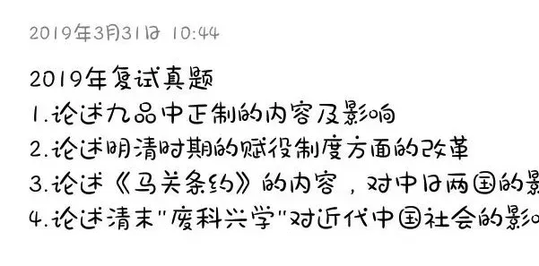 研究生复试当中笔试虽然不是“大头”,但近几年来一些高校刻意提高难度,以笔试成绩不及格淘汰考生。此外,从2023年考研开始,线下复试再次成为主流,笔试也再次出现在了复试当中(2020-2022年很多高校取消了笔试环节)。本号汇集的大都是2019年以前数十所高校的往年笔试真题,给大家在备考复试的时候提供一点经验。ps:2023-2025年的笔试真题基本没有,这和自2020年以来线上复试签订的所谓“保密协议”影响有关(实际上复试结束了就不存在这个问题),所以基本没有搜集到。如果需要建议联系23-25年上岸的学长学姐获取。2019南大中近史复试真题回忆版