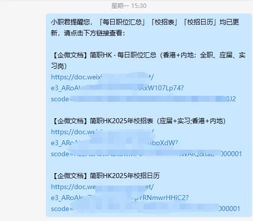 更有每日/每周一的更新提醒,港漂再也不用担心错过全职、应届、实习的好岗位啦: