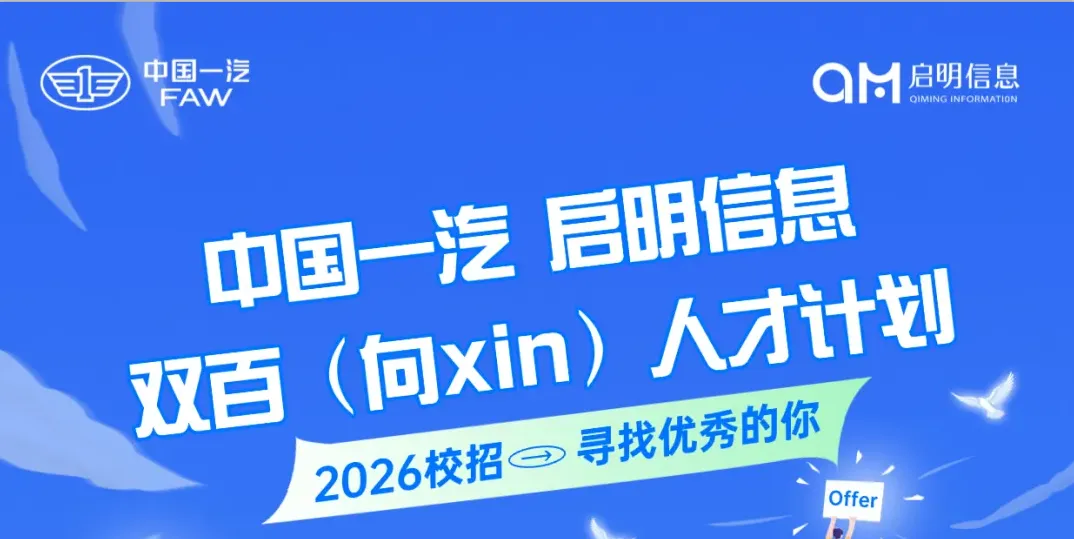 🌟 中国一汽·启明信息“双百(向xin)人才计划”2026届校园招聘正式启动!