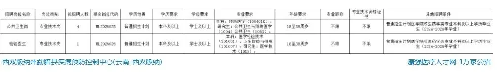 勐腊县2026年事业单位计划公开考核招聘急需紧缺人才37名(29个岗位),具体岗位、人数、资格条件等详见《勐腊县2026年事业单位公开考核招聘急需紧缺人才岗位信息表》(以下简称《岗位信息表》,附件1)。