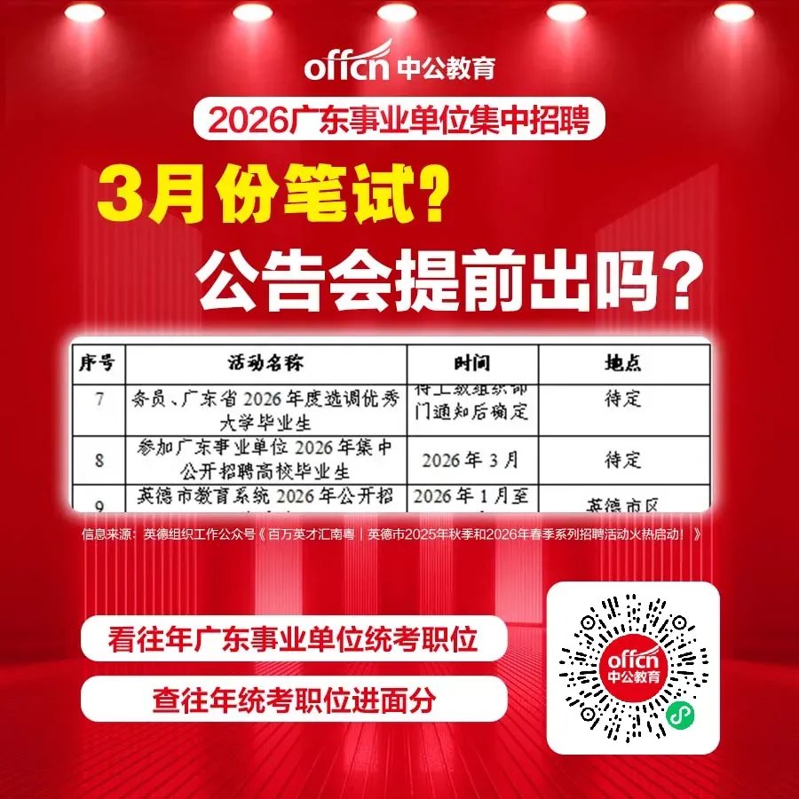 2026年广东事业单位集中招聘考试1月必出公告,3月考试!📢开课啦!开课啦!别人已经学了几轮,你还不开始?阳江分校:1月17日上课阳春分校:1月10日上课--------📚备考资料也给大家准备好了,一定要提前学!