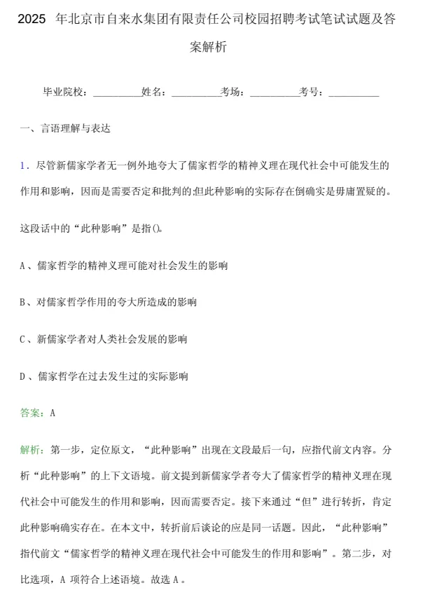 按“行测 50 % + 写作 30 % + 时政企业文化 20 %”权重分配时间,即可一次攻克北京自来水集团笔试。祝顺利晋级面试!