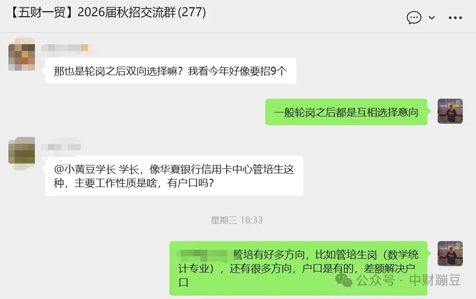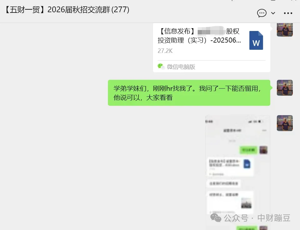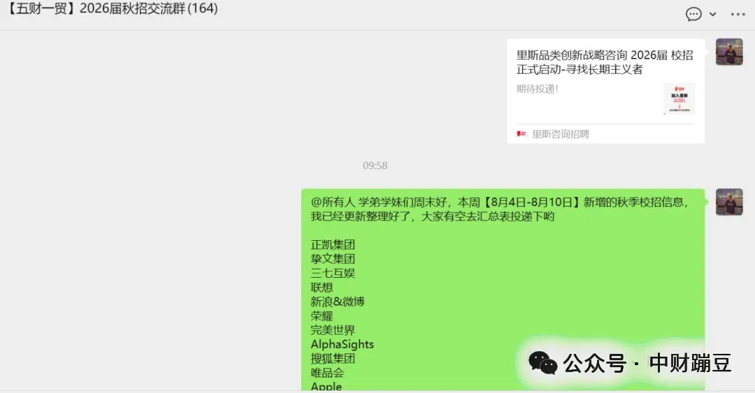 在这里我说明一下,我不是求职机构,这些都是个人的求职指导,我的情况是本科中央财经大学,硕士中国人民大学,现在金融机构工作,之前在腾讯及国企工作,后面创立运营了中财蹦豆及五财一贸公众号,从2018年就开始指导应届生找工作了,到现在已经有差不多7年了,初衷想借助自己的经验去帮助应届毕业生不错过最新的名企校招信息,选好第一份工作,多拿offer,最后上岸选择一份适合自己的工作,有需要的同学直接戳我咨询详情~