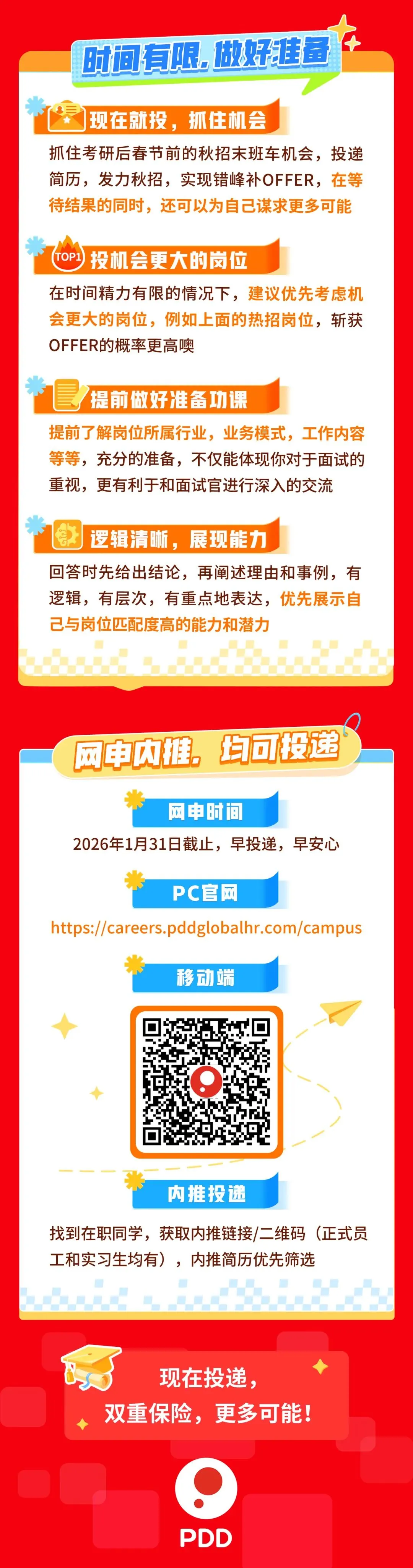 当前位置:首页>应届生招聘>校园招聘 | 拼多多集团研后招聘专场,这些岗位机会更大,速投!