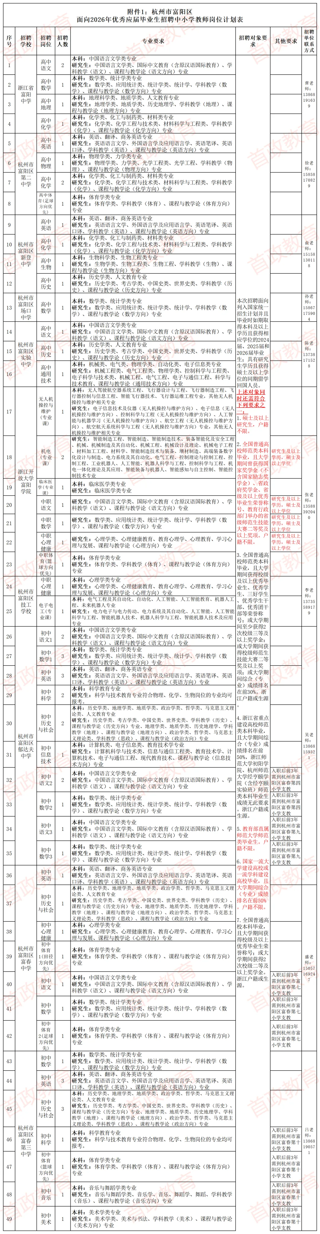 7.本招聘公告由杭州市富阳区教育局负责解释。