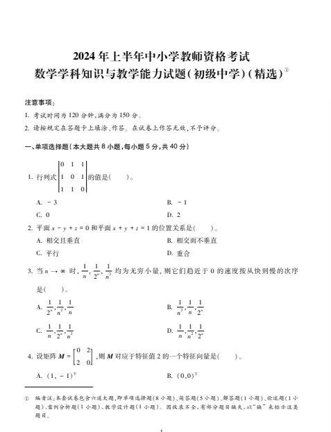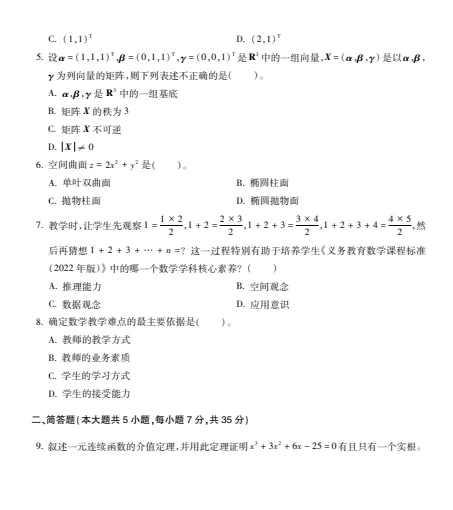 教资笔试科三数学真题+解析(初中高中)