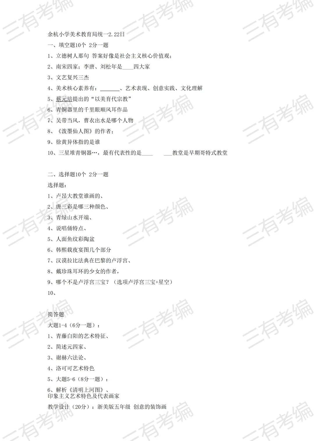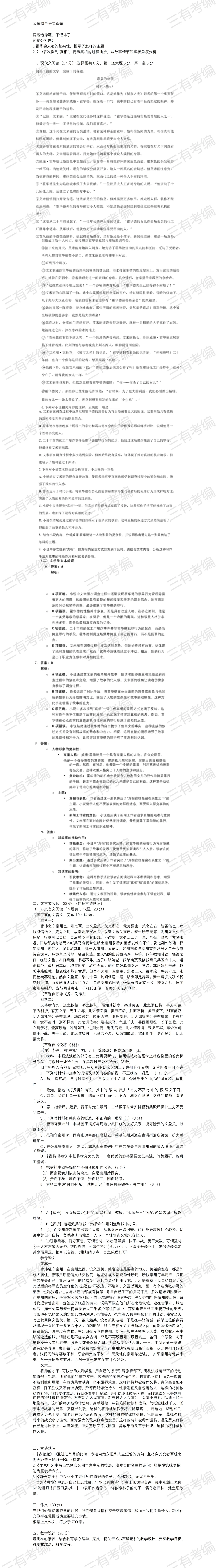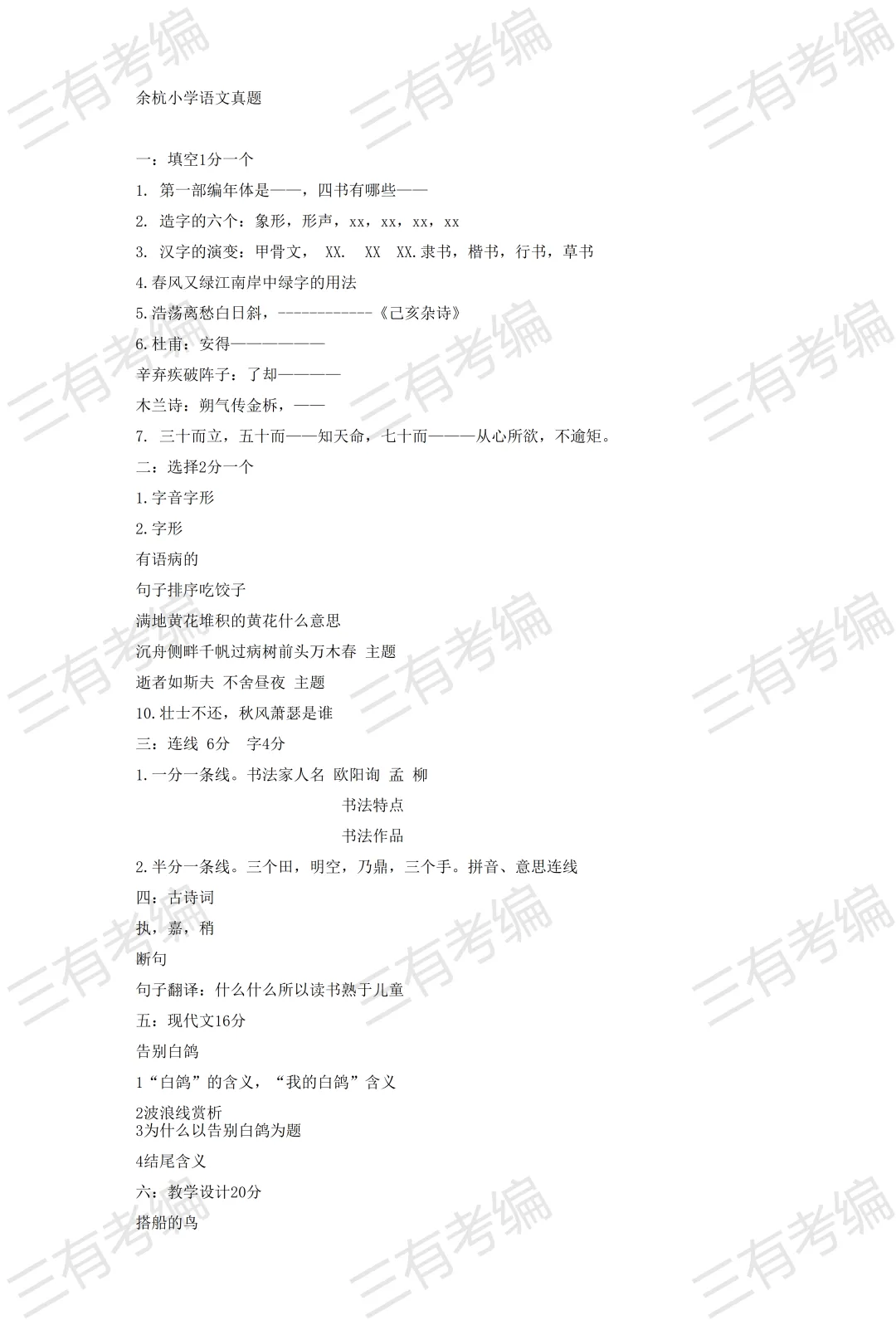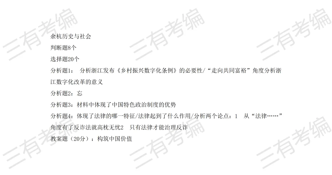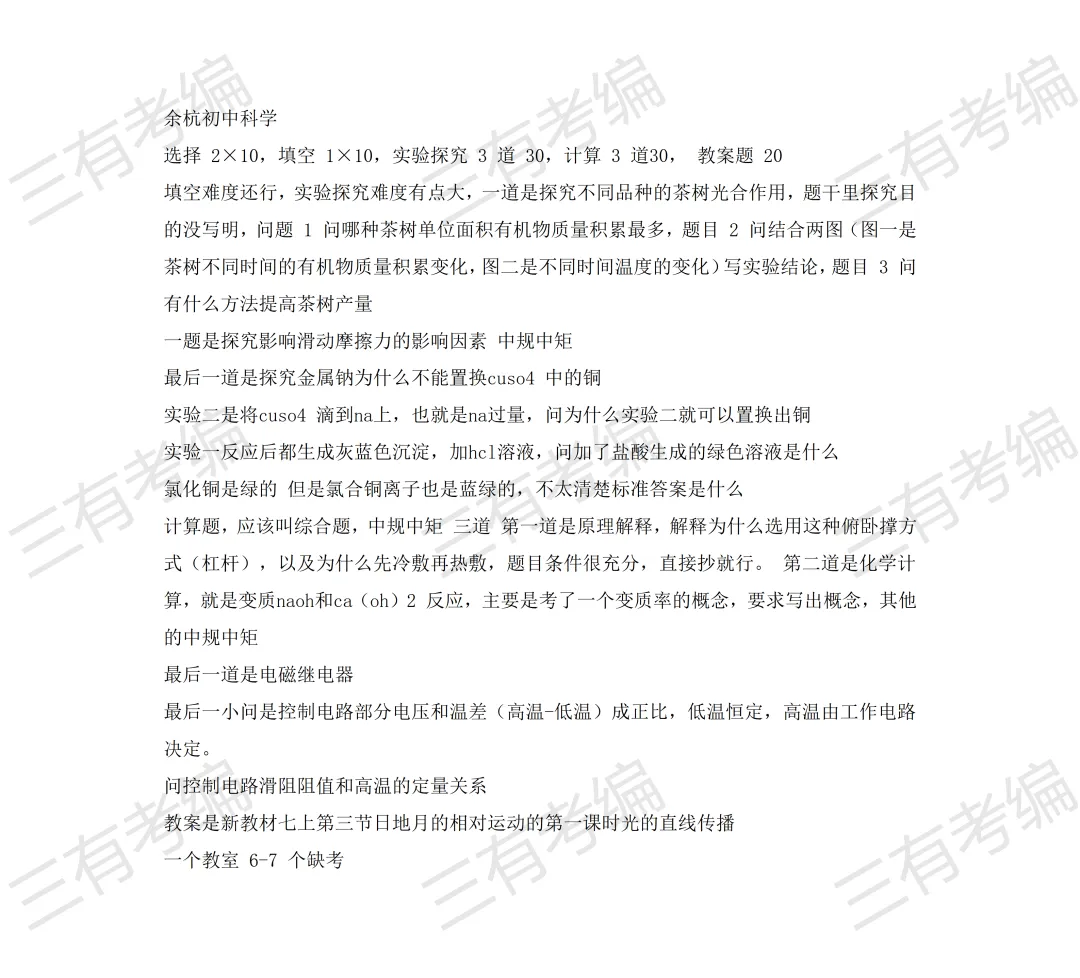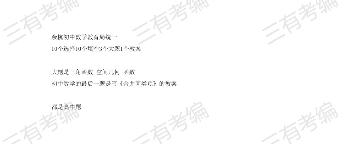 再发一遍!余杭提前批各科笔试真题合集