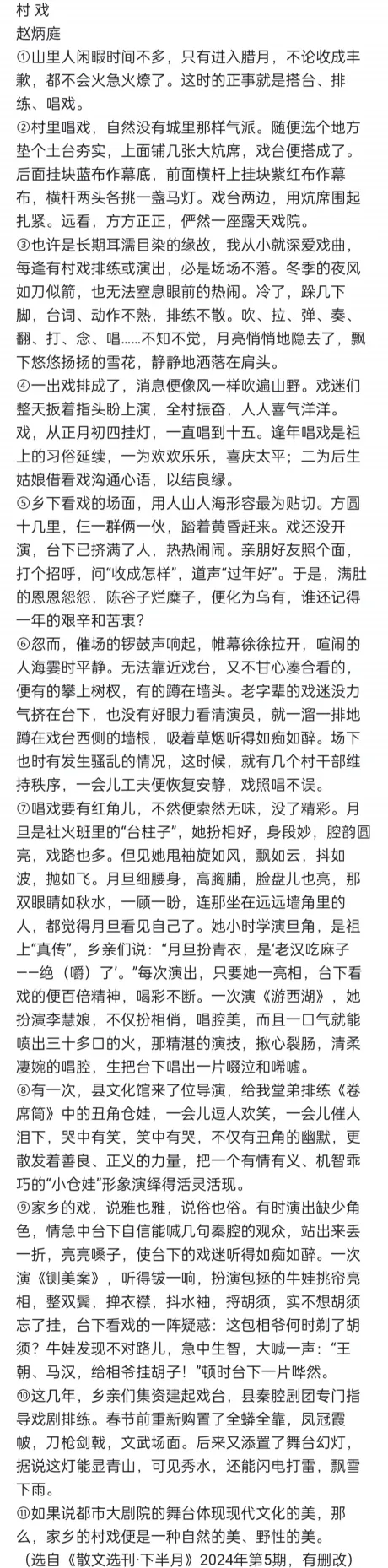 7.选择题(关于村戏的雅与俗)